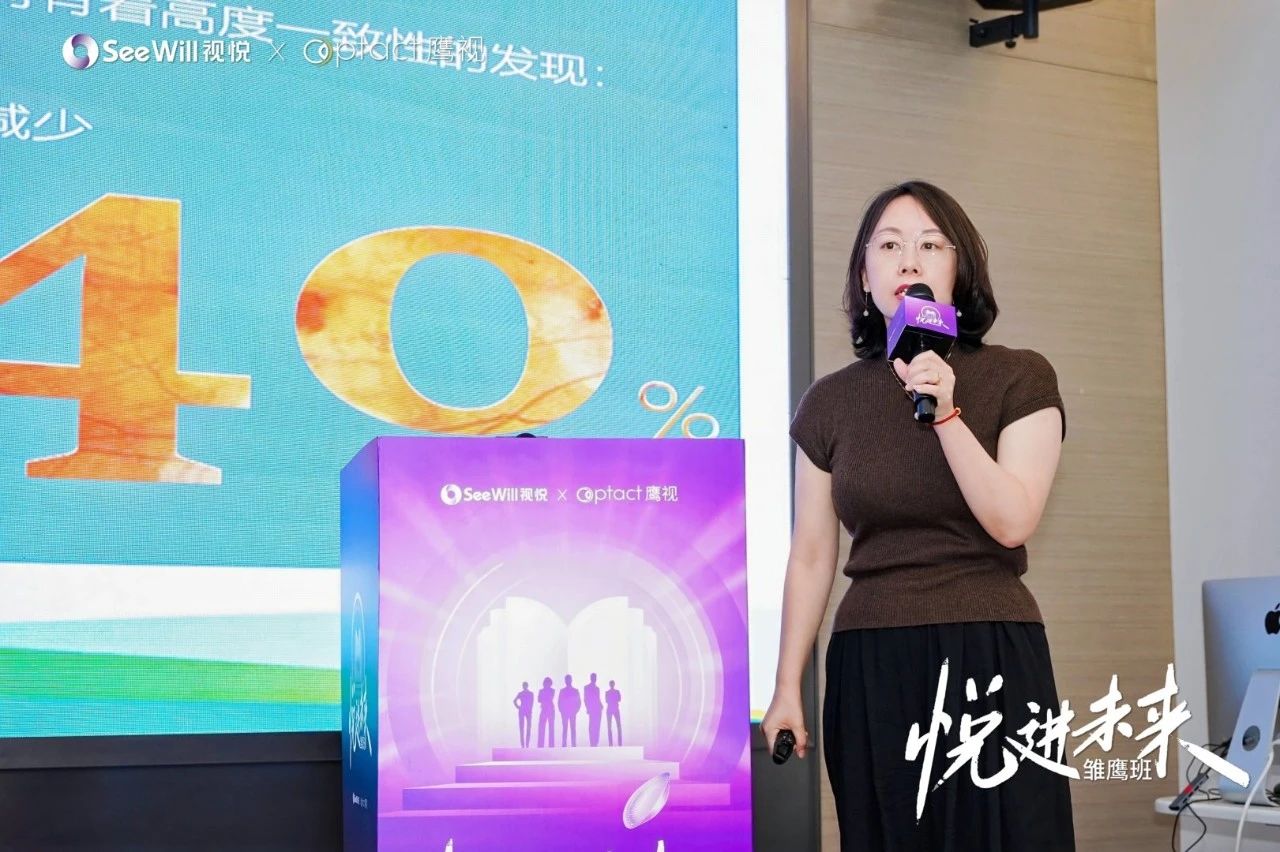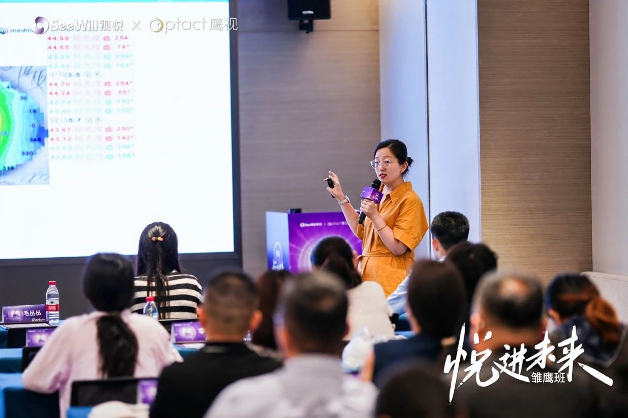 蔡秀婷主任則透過案例證明了鷹視NP系列角膜塑形鏡對於平角膜和大散光患者的良好塑形效果與眼軸控制能力,其獨特的雙反轉弧設計能帶來更大的離焦量以更好地防控近視。