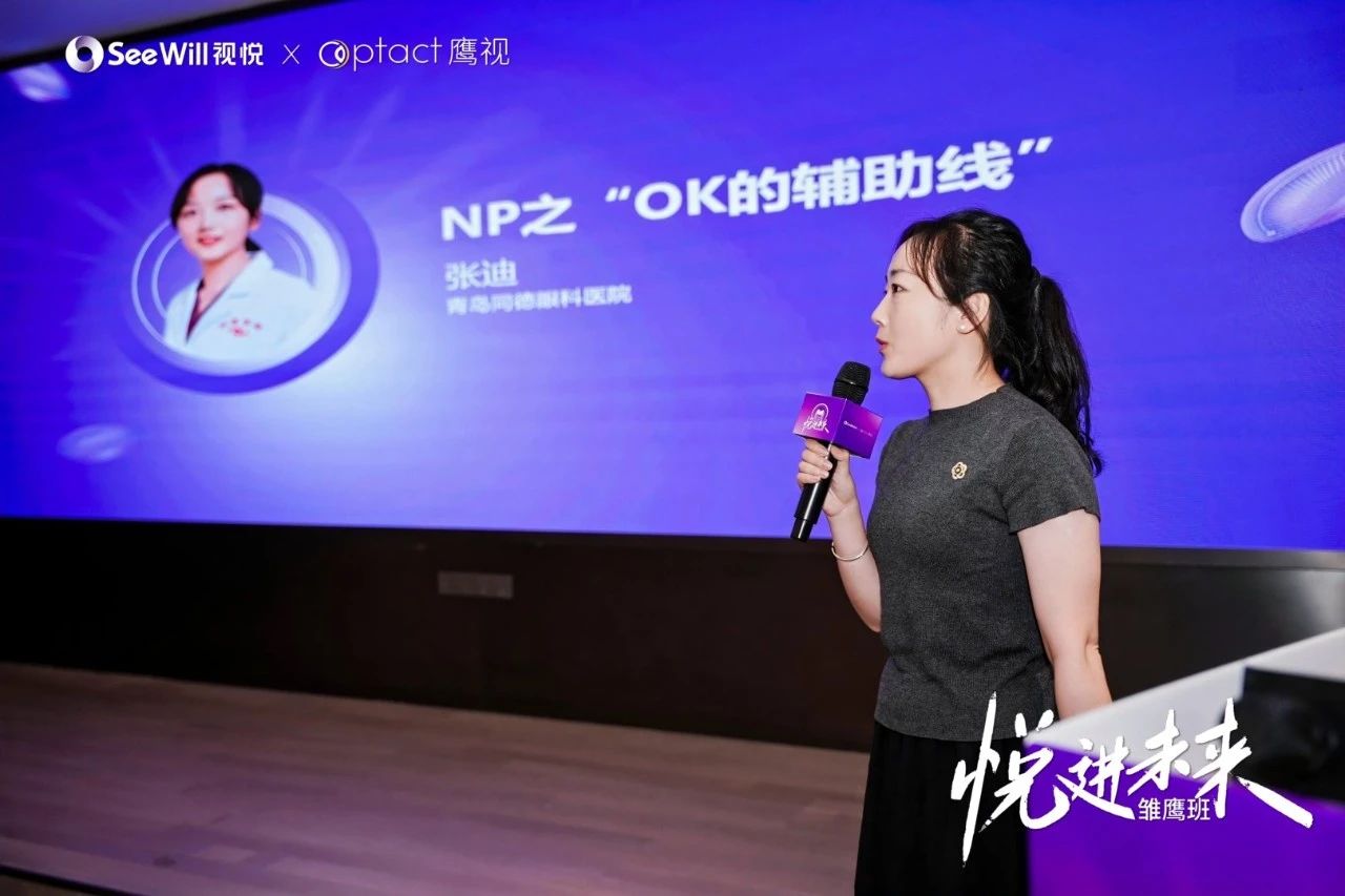 青島同德眼科醫院的張迪主任以《NP之「OK的輔助線」》為題,巧妙地詮釋了NP系列角膜塑形鏡產品的核心設計概念。指出NP角膜塑形鏡採用「點對點軸線對齊」設計,確保了在近視管理實施過程中,鏡片定位更佳,治療區壓平更均勻,從而帶來卓越的視覺品質與塑形效果。其獨特的「雙反轉設計」能產生更多的降度和周邊離焦量,使眼軸控制效果更為顯著。更值得一提的是,NP角膜塑形鏡將複雜的驗配簡化為BFR與CA兩個核心指標,大大提升了臨床工作效率。